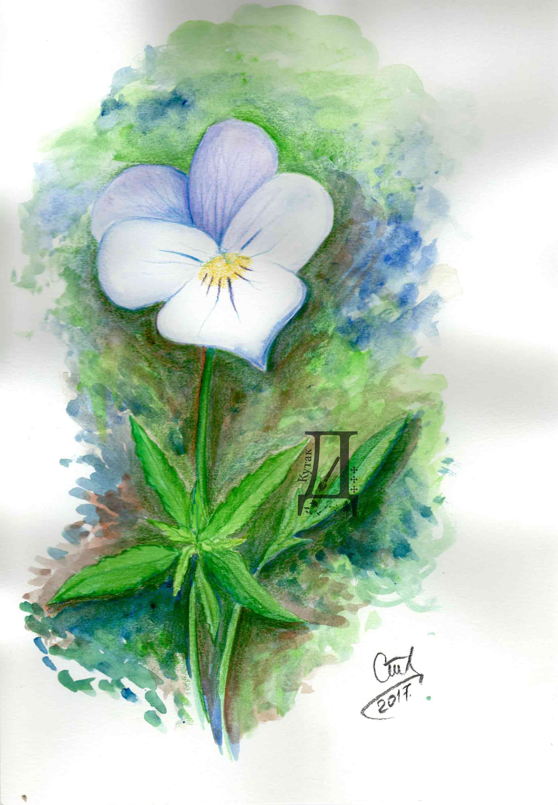 Лековита биљка љубичица триколор, акварел.