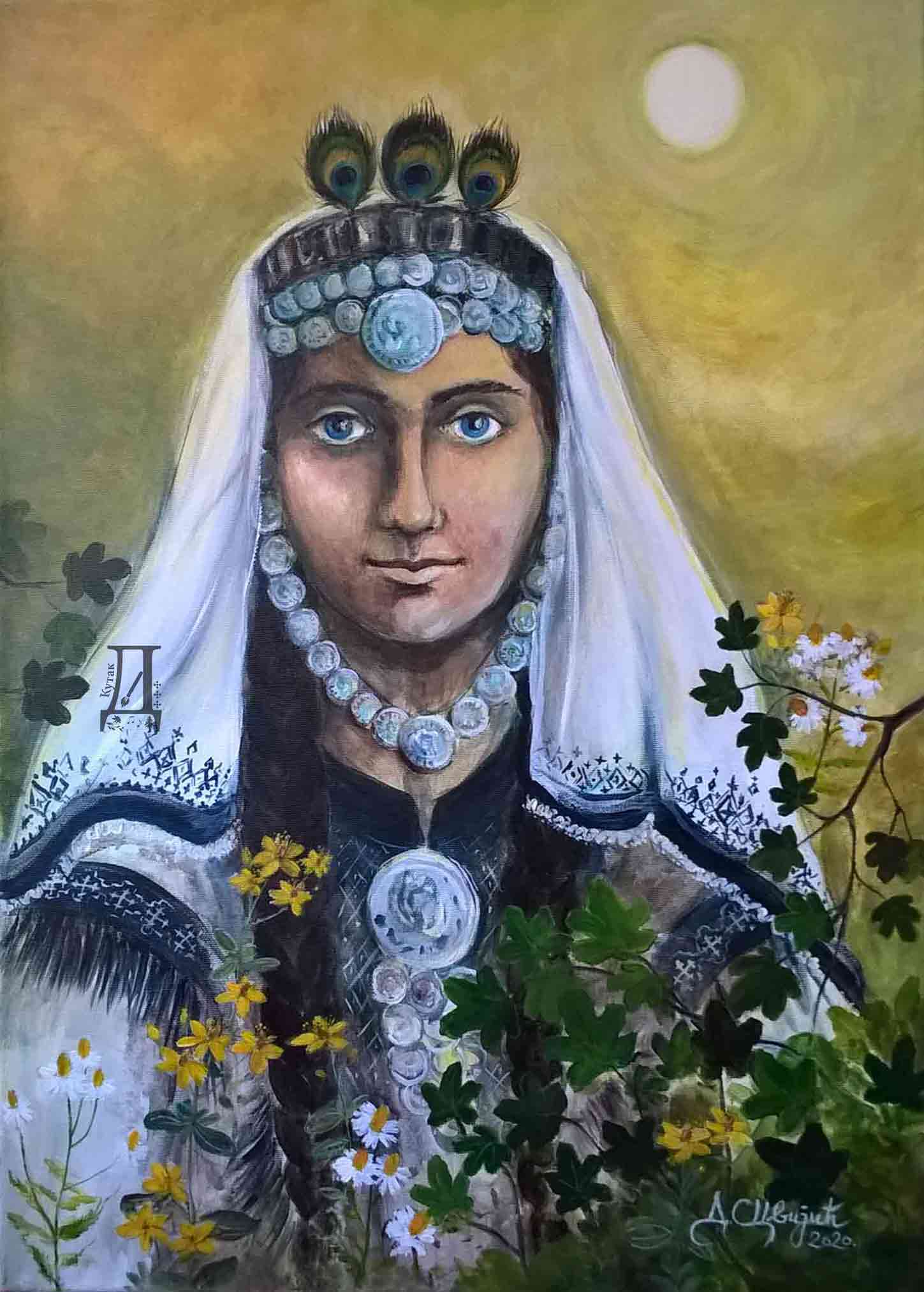 Акрил на платну: Невјеста у традиционалној ношњи.