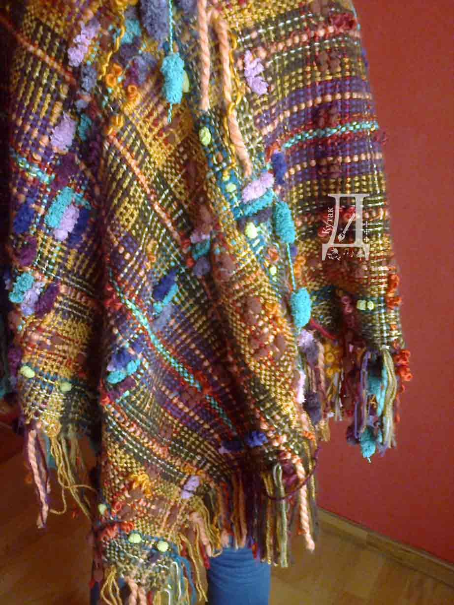 Шарени пончо 3, ткан вуном и вуницом.