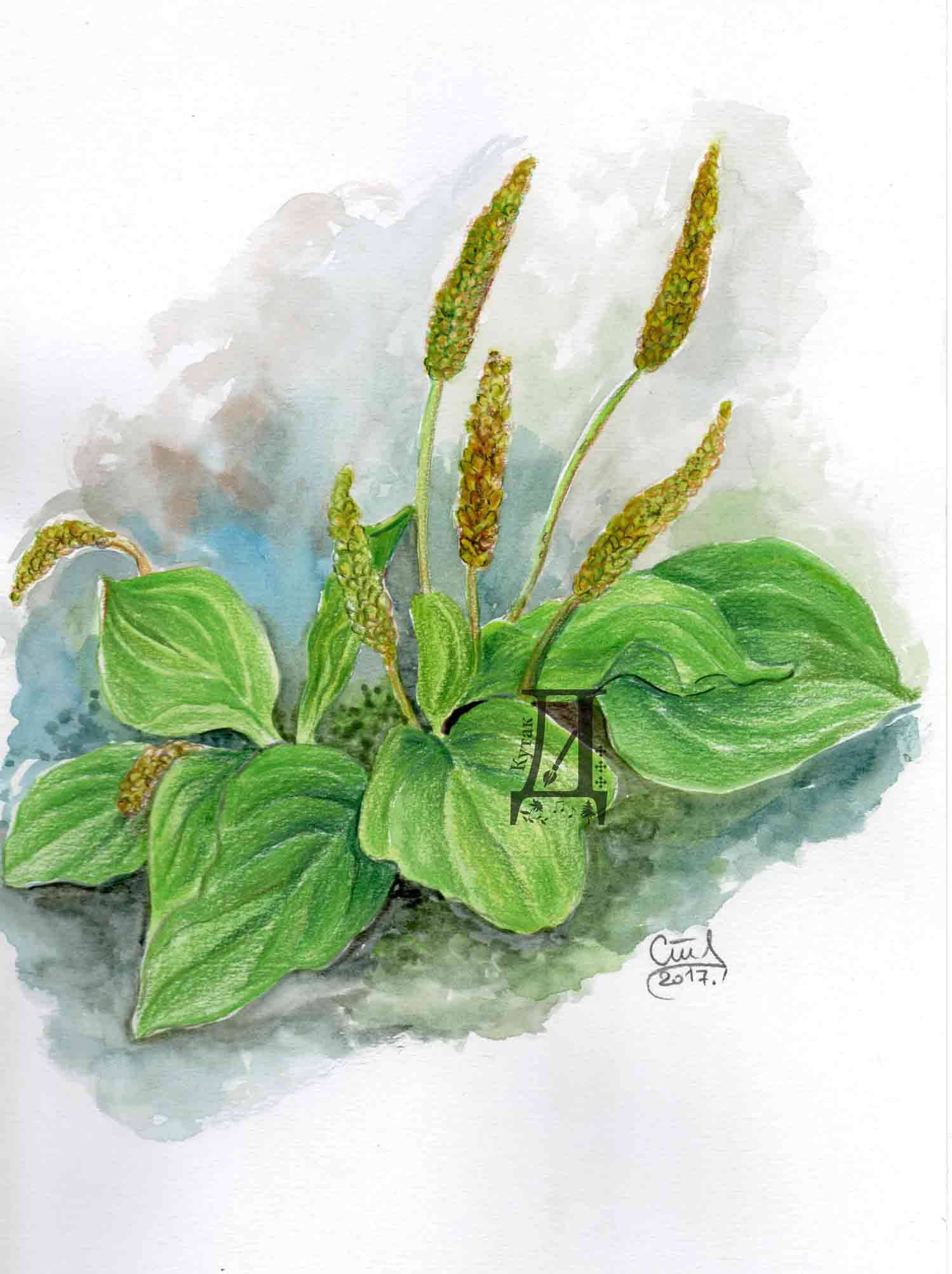 Лековита биљка боквица широколисна, акварел.