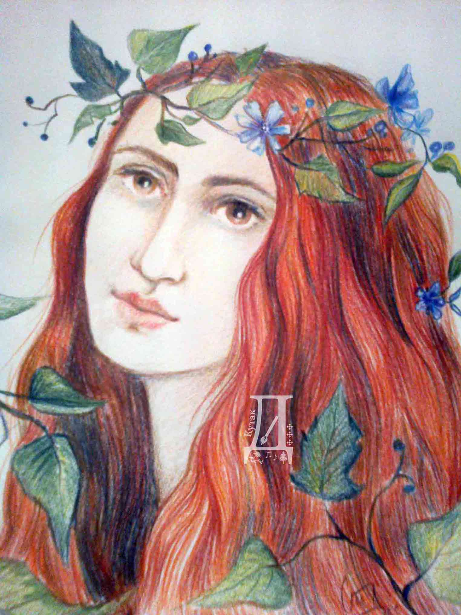 Оловке у боји: Вила са венцем водопије.